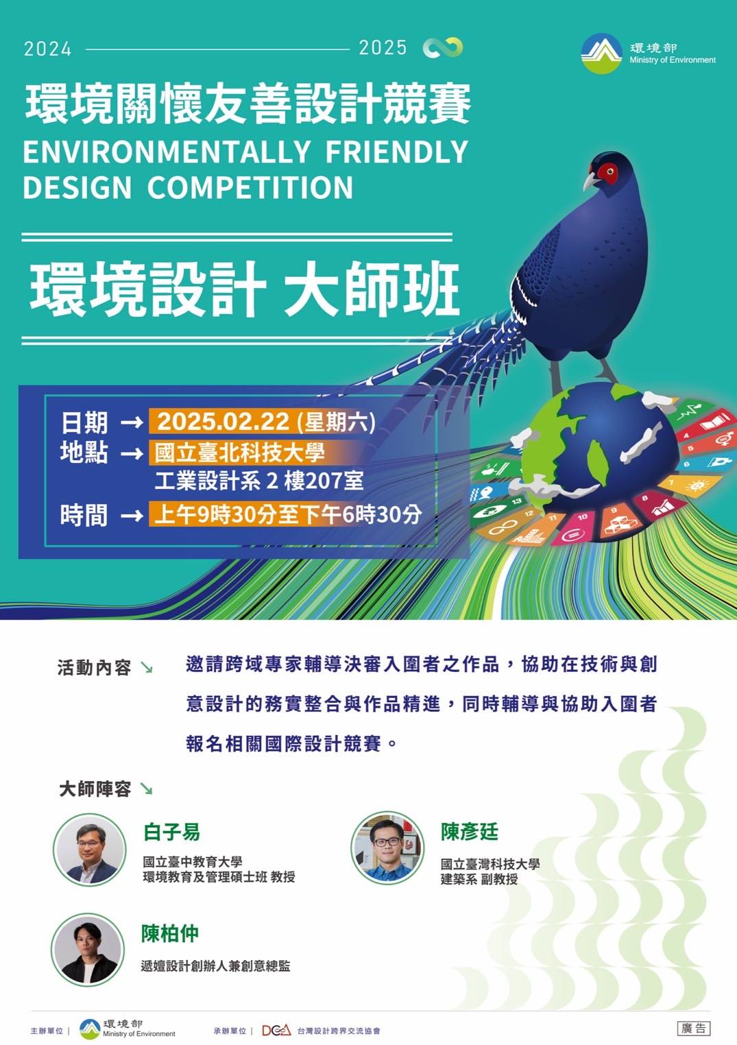 本機構白子易主任獲環境部邀請輔導環境關懷友善設計競賽-環境設計大師班決審入圍者作品,協助在技術與創意設計的務實整合與作品精進,同時輔導與協助入圍者報名相關國際設計競賽。
